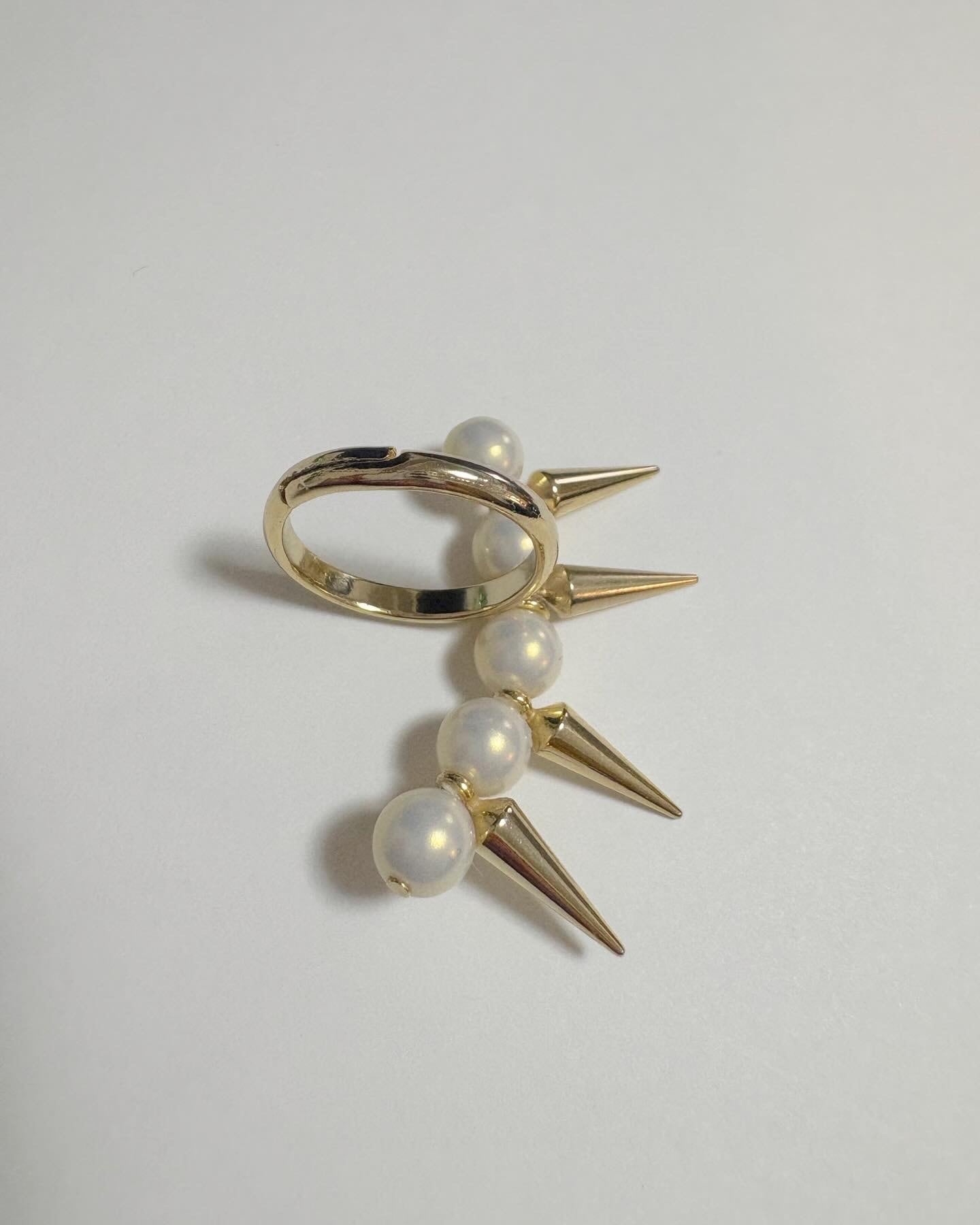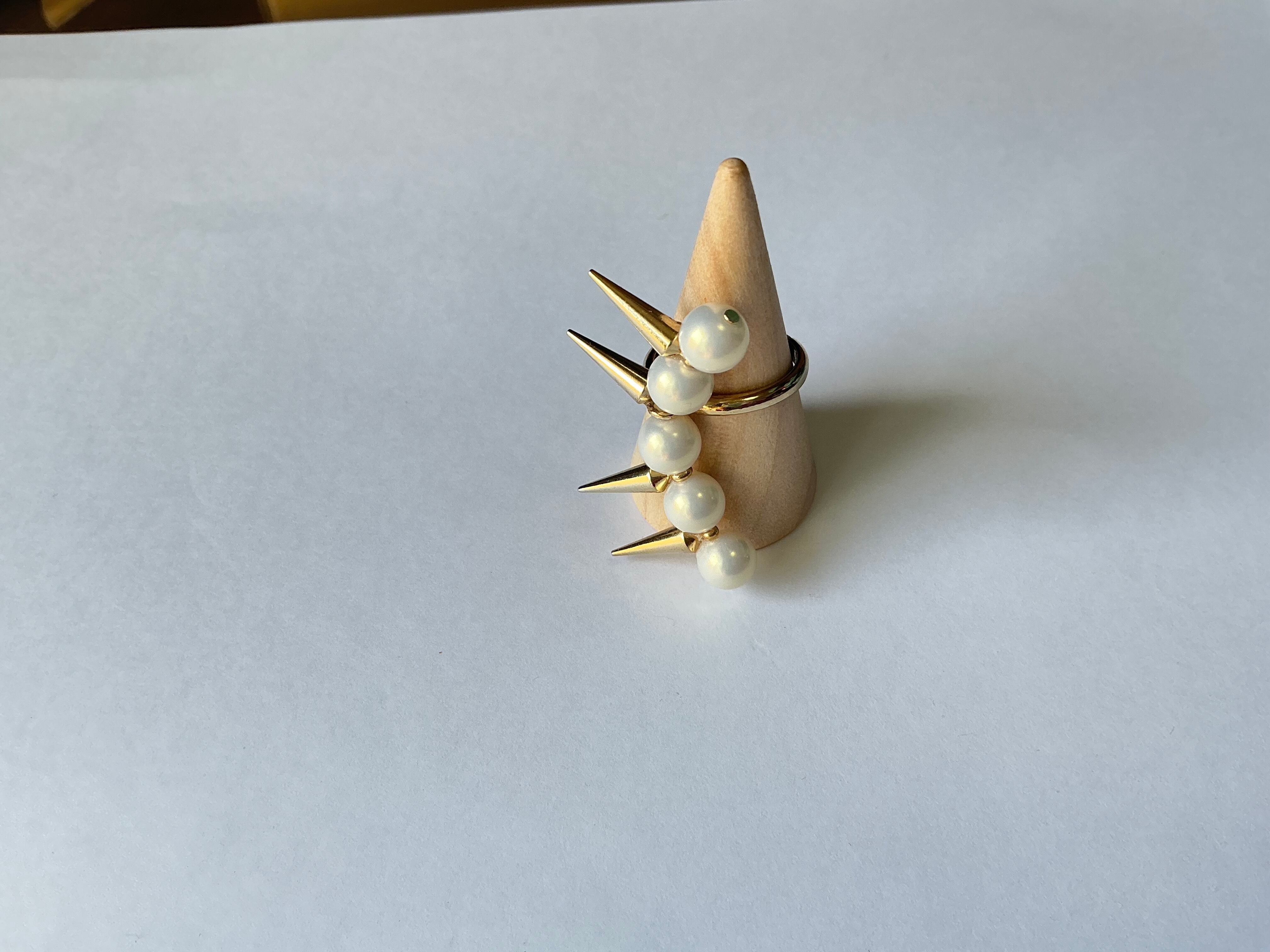 とげとげとパールが特徴の個性的なデザインのリング。