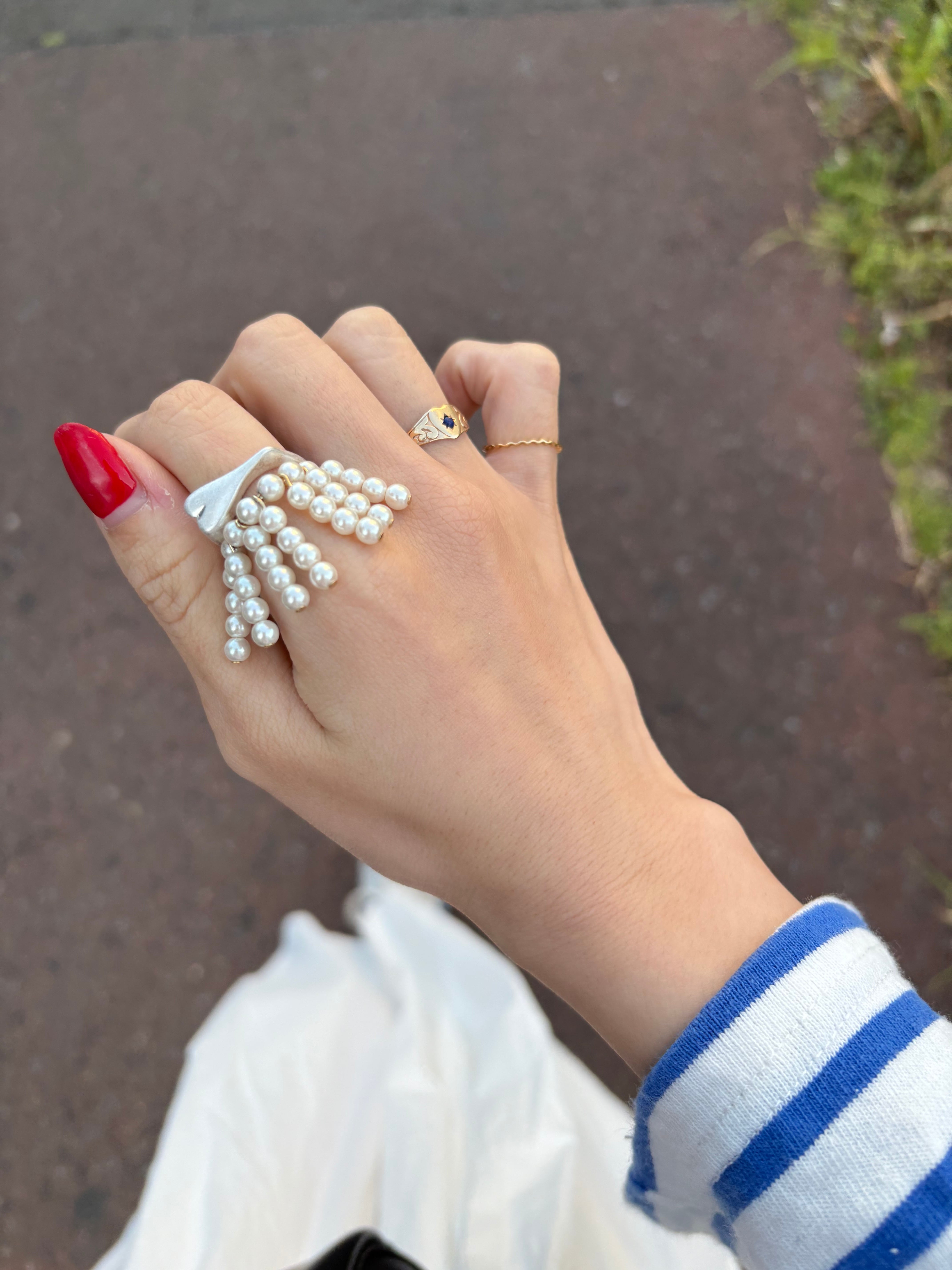 揺れりパール個性的なデザインのリング。