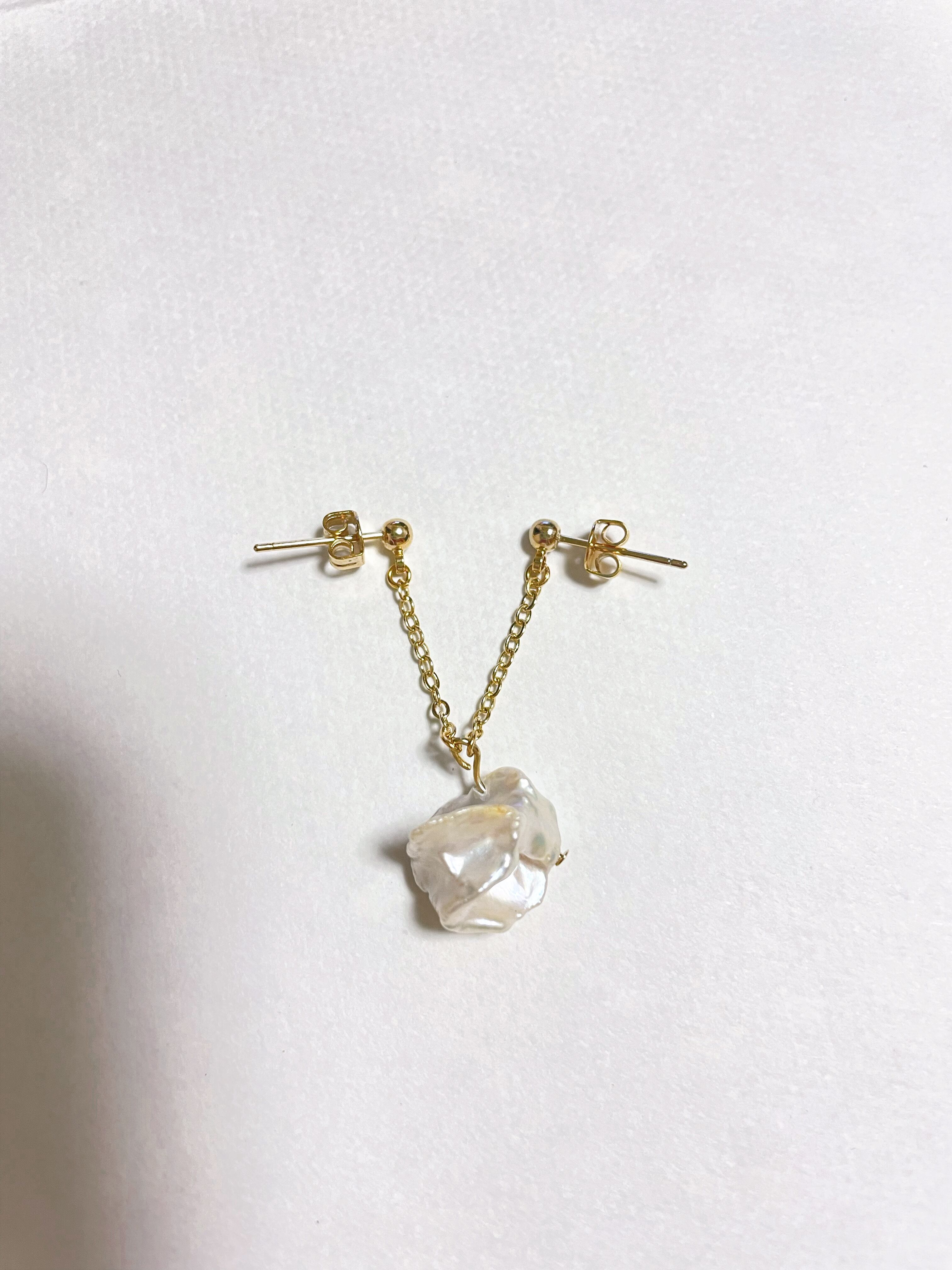 淡水パールをぶら下げた2ホールピアス